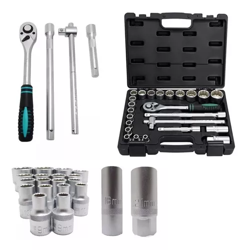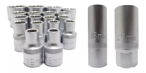 18 Soquetes estriados 1/2″: 8, 9, 10, 11, 12, 13, 14, 15 ,16, 17, 18, 19, 21, 22 ,24, 27, 30 e 32mm